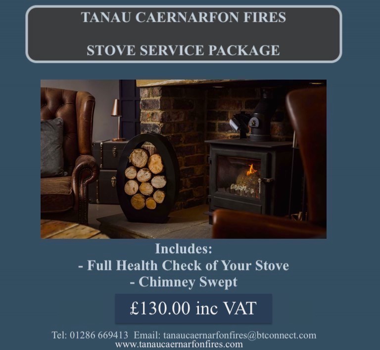 As of October 2023 our Stove Service Package will only be available to customers whereby the stove has been purchased from Tanau Caernarfon Fires. Subject to availability.